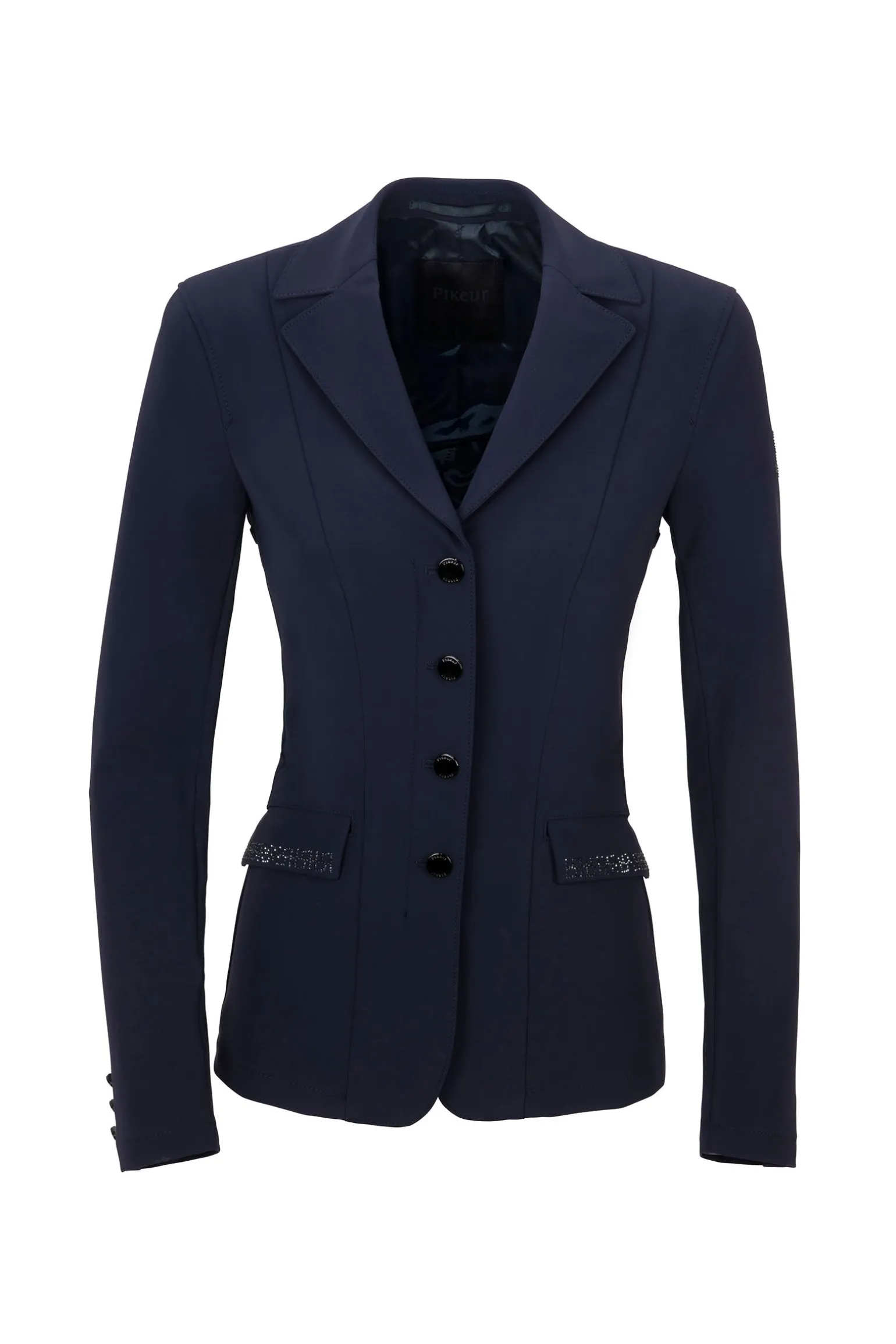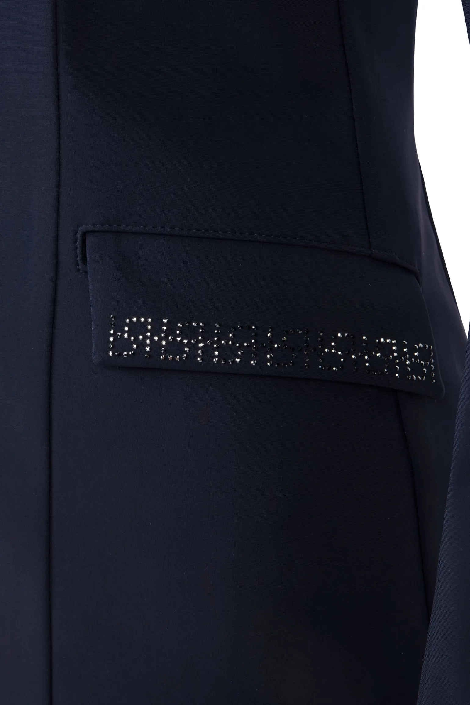 Dieses Sakko vereint Eleganz und Funktionalität und besticht durch elegante Strassapplikationen für einen Hauch von Raffinesse. Hergestellt aus atmungsaktivem Tech-Jersey-Material, verfügt es über ein halbes Mesh-Futter zur Luftzirkulation sowie Lüftungsösen für zusätzlichen Komfort. Der Taillengürtel und die Pattentaschen sind mit der stilvollen Selection Strassapplikation verziert. Ein verdeckter Reißverschluss an der Vorderkante und Knopfapplikationen am Ärmel vervollständigen das elegante Design.
