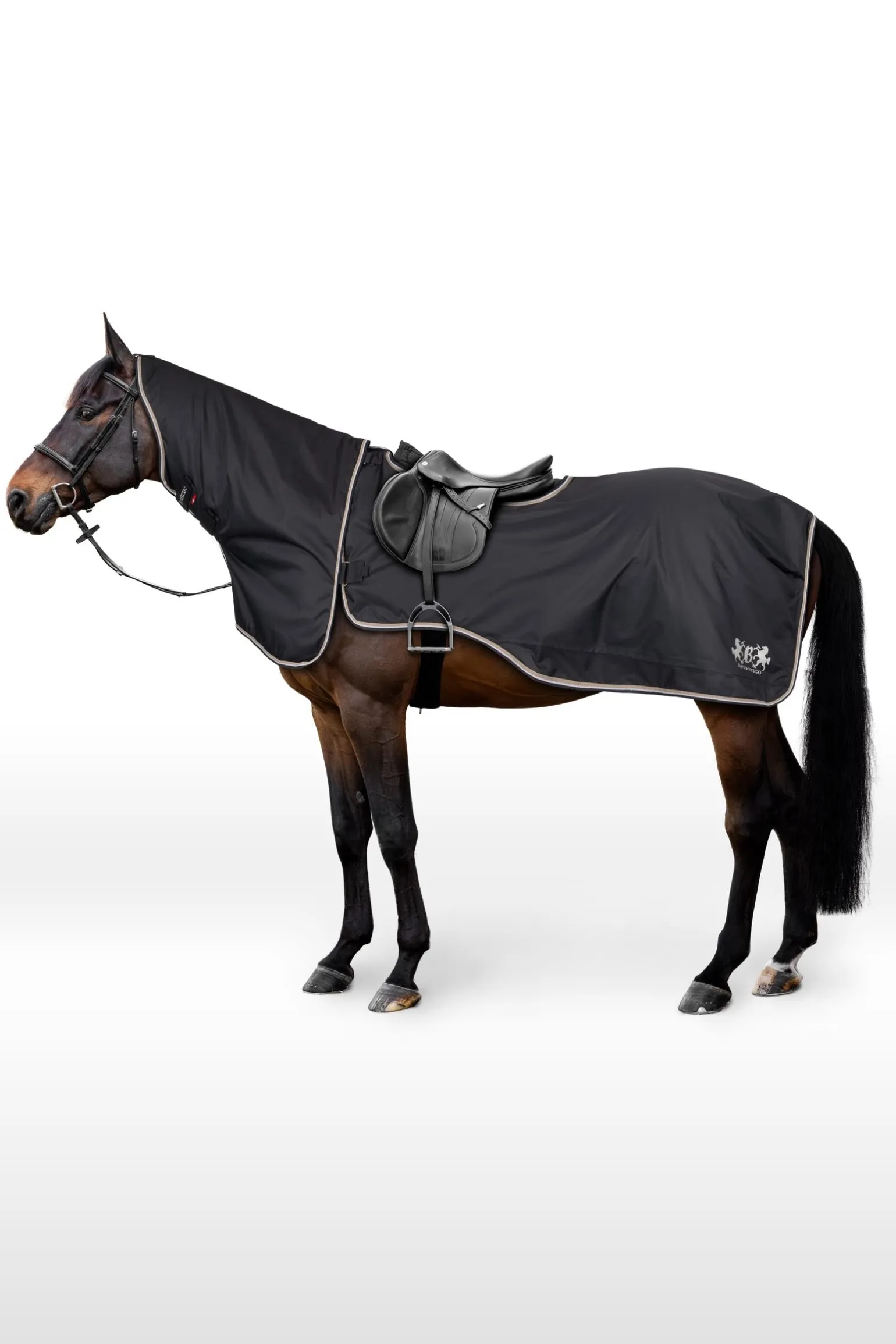 Die B Vertigo Vancouver Ausreitdecke ist mit einem abnehmbaren Halsteil ausgestattet. Es spendet deinem Pferd zusätzliche Wärme, wenn sie benötigt wird. Das Halsteil kann einfach mit Klettverschlüssen und D-Ringen befestigt werden. Wasserfeste Eigenschaften schützen dein Pferd vor dem Regen, und das Futter hält es warm. Ein Schweifriemen sorgt dafür, dass die Decke an ihrem Platz bleibt. Die schöne Einfassung und der silberne Logodruck machen den eleganten B Vertigo Look komplett.