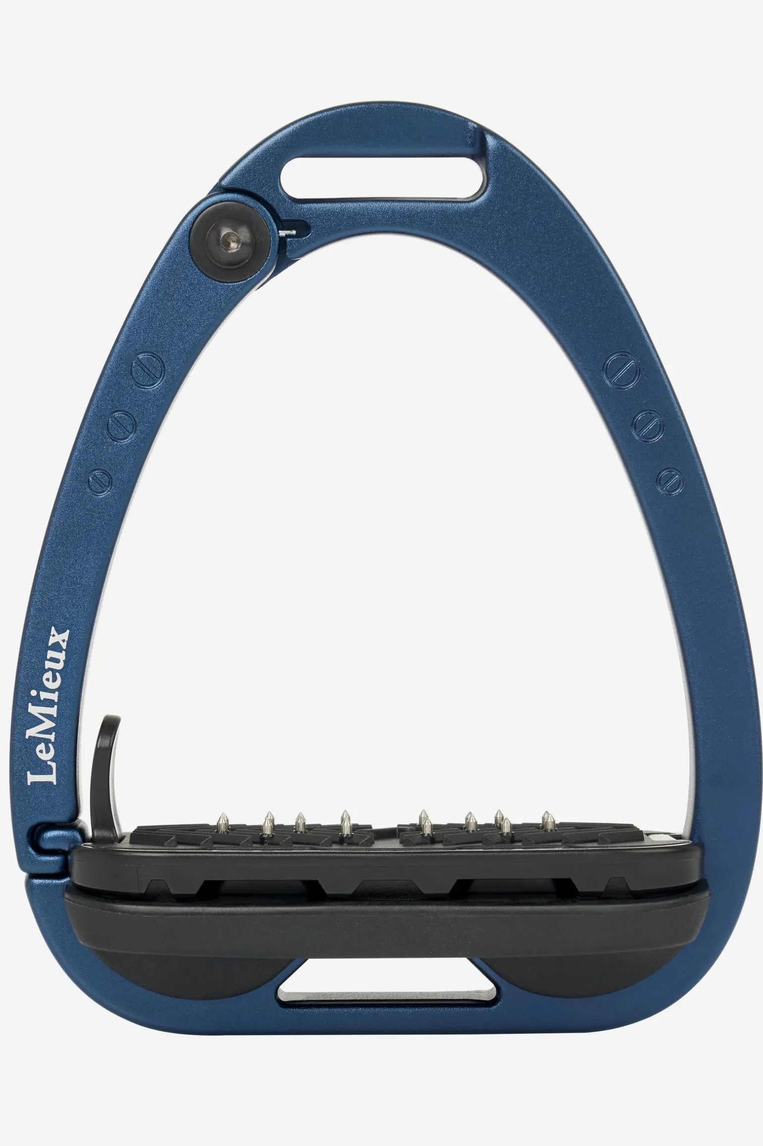 Die Trittfläche wird durch ein Twin-Balance-Bogensystem gestützt, das das Gewicht gleichmäßig auf die Basis des Steigbügelrahmens verteilt. Der Scheitelpunkt des Rahmens ist vertieft und versetzt, was eine 45º-Ausrichtung nach außen fördert und es dem Reiter erleichtert, den optimalen Winkel für den Fuß zu finden und einen verlorenen Steigbügel wiederzufinden.