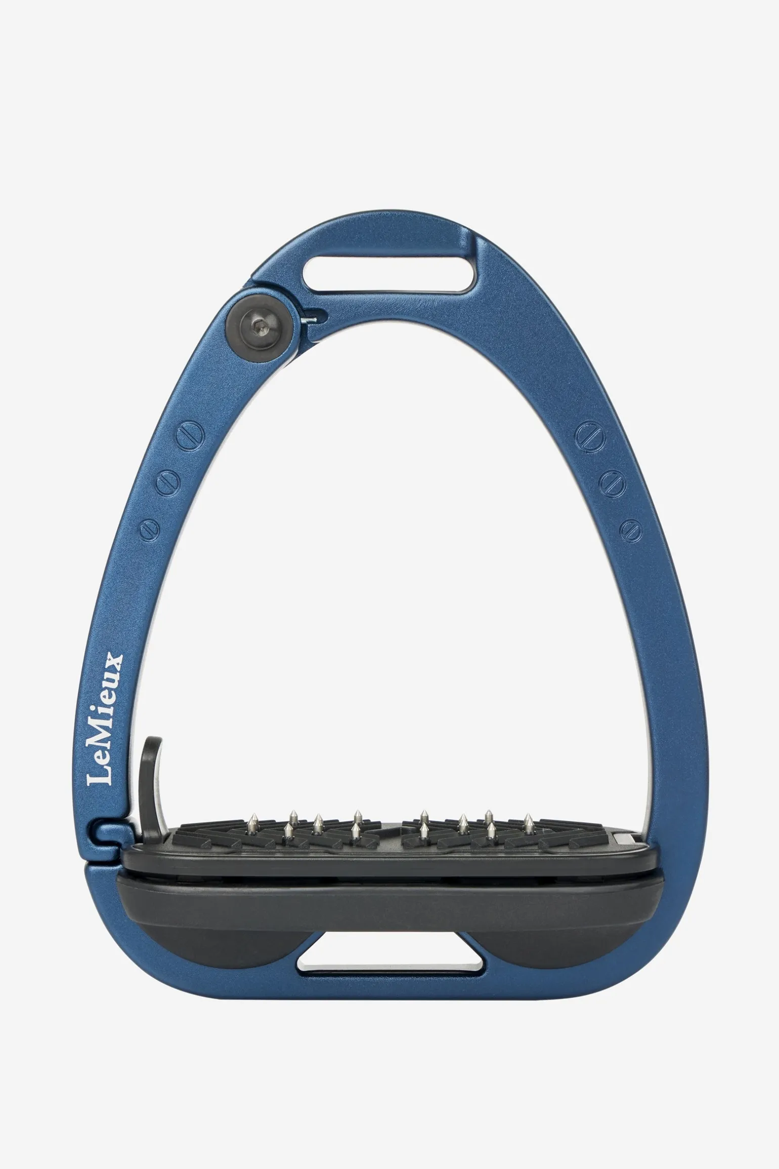 Ein integrierter Sicherheitsarm verfügt über ein zweistufiges Auslösesystem, das ein ungewolltes Öffnen verhindert. Der federbelastete Sicherheitsarm rastet in der Basis des Hauptrahmens ein, was bedeutet, dass bei hoher Belastung wie beispielsweise der Landung nach einem Sprung, das Gewicht des Reiters gleichmäßig auf den Steigbügel verteilt wird. Wenn Druck auf den Steigbügelarm ausgeübt wird, wie z. B. bei einem Sturz, löst sich der Arm, so dass der Fuß nicht im Steigbügel hängen bleibt. Die Auslösekraft des Steigbügelarms beträgt im Test 36N (entspricht 3,62kg), d.h. genug Widerstand, um ein unbeabsichtigtes Öffnen zu verhindern, aber ein sicheres Auslösen im Falle eines Sturzes des Reiters zu gewährleisten.