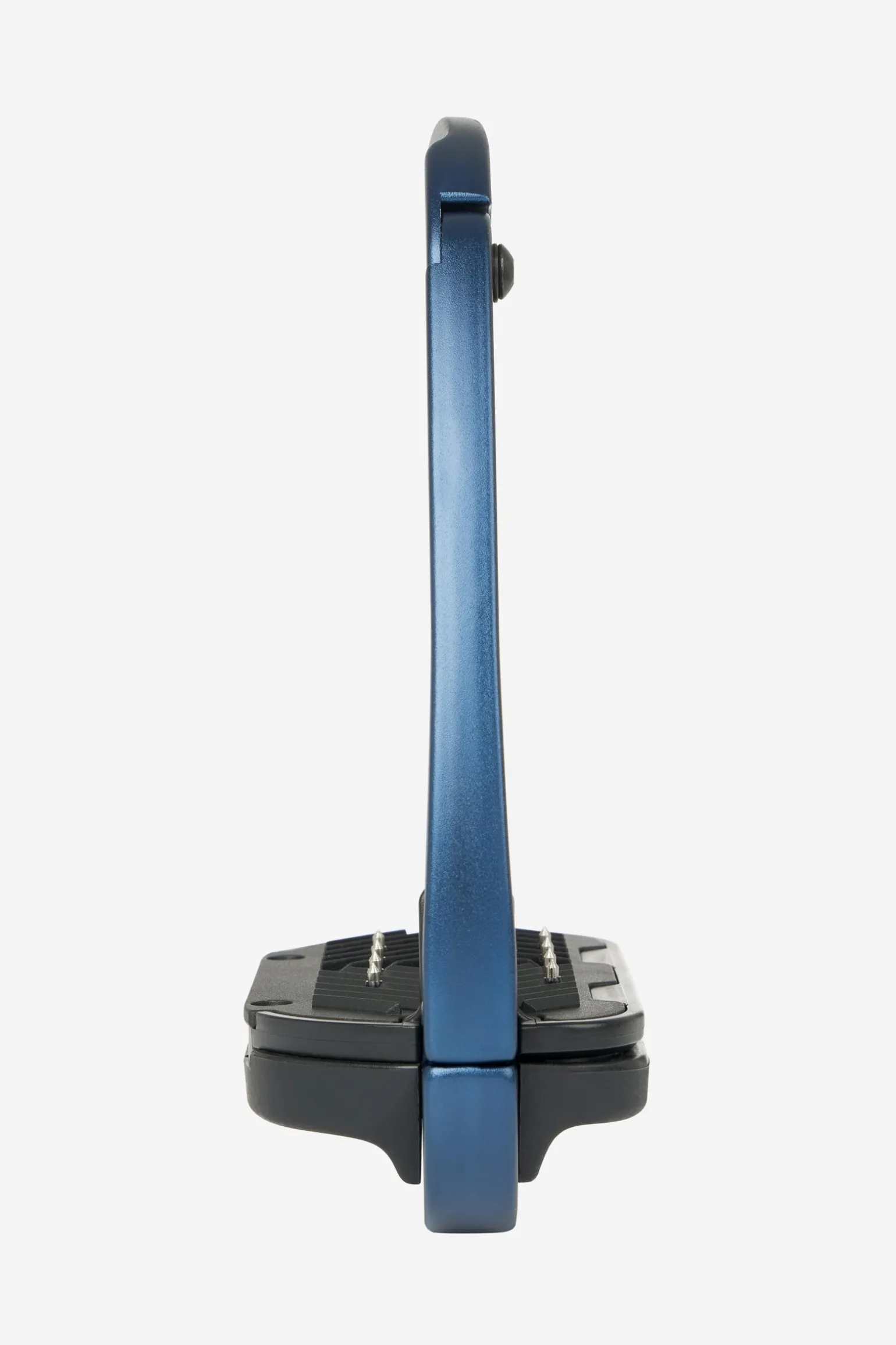 Die Trittfläche wird durch ein Twin-Balance-Bogensystem gestützt, das das Gewicht gleichmäßig auf die Basis des Steigbügelrahmens verteilt. Der Scheitelpunkt des Rahmens ist vertieft und versetzt, was eine 45º-Ausrichtung nach außen begünstigt, was es dem Reiter erleichtert, den optimalen Winkel für den Fuß zu finden und einen verlorenen Steigbügel wiederzufinden.