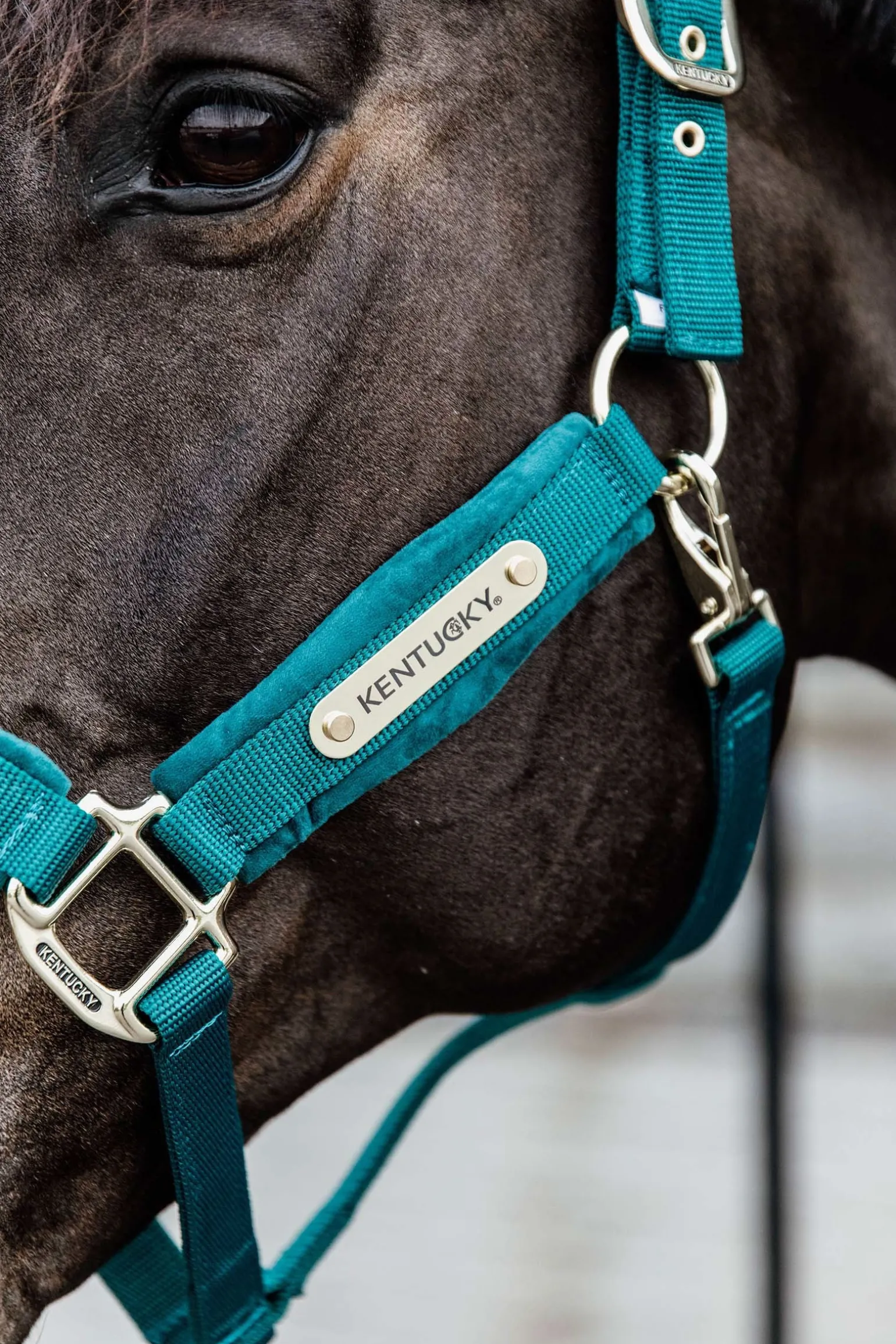Für alle Fans der Kentucky Artikel mit Samt haben wir jetzt ein Halfter mit Samtstoff. Das Namensschild am Halfter kann umgedreht und zum Beispiel mit dem Namen deines Pferdes personalisiert werden.