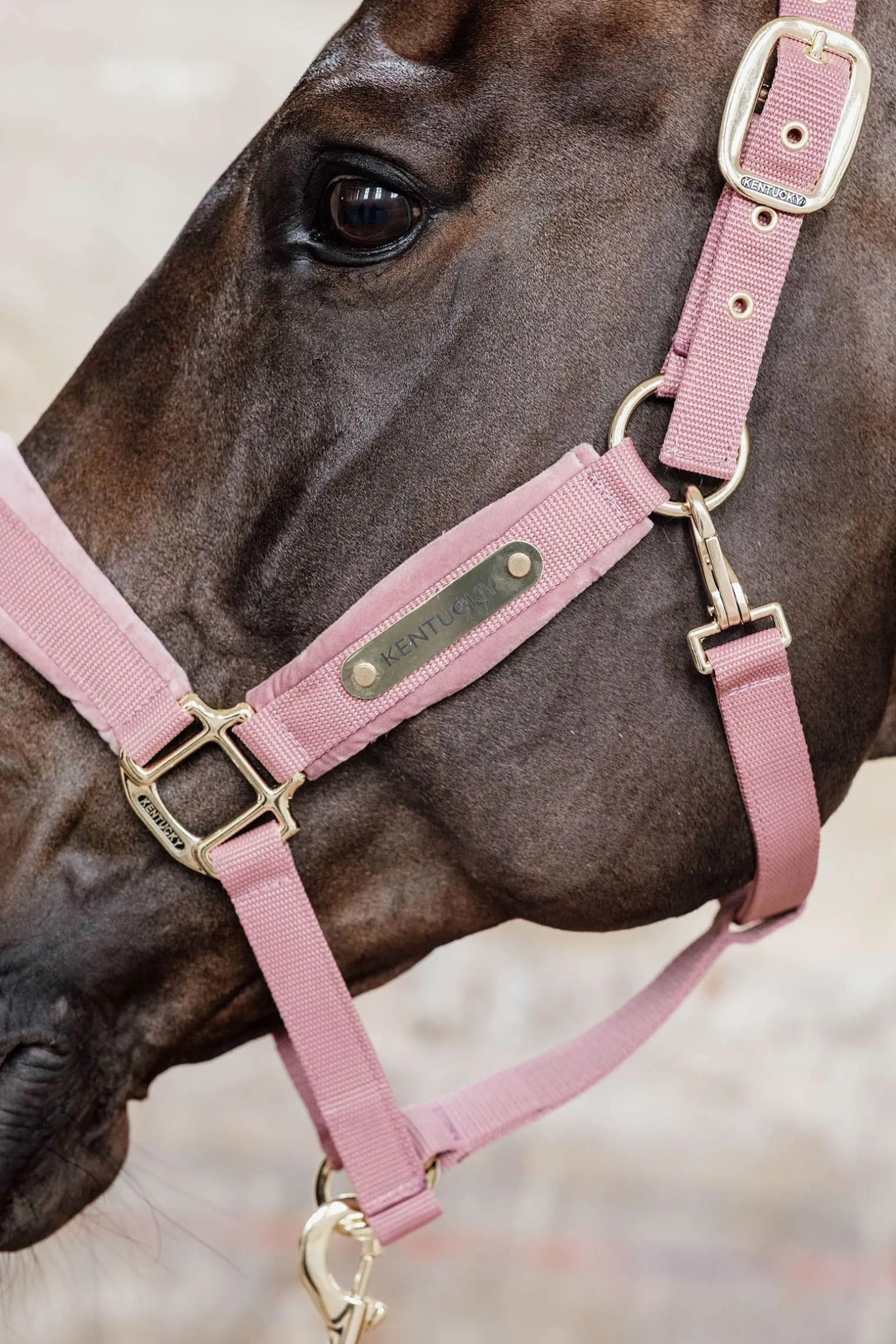 Für alle Fans der Kentucky Artikel mit Samt haben wir jetzt ein Halfter mit Samtstoff. Das Namensschild am Halfter kann umgedreht und zum Beispiel mit dem Namen deines Pferdes personalisiert werden.