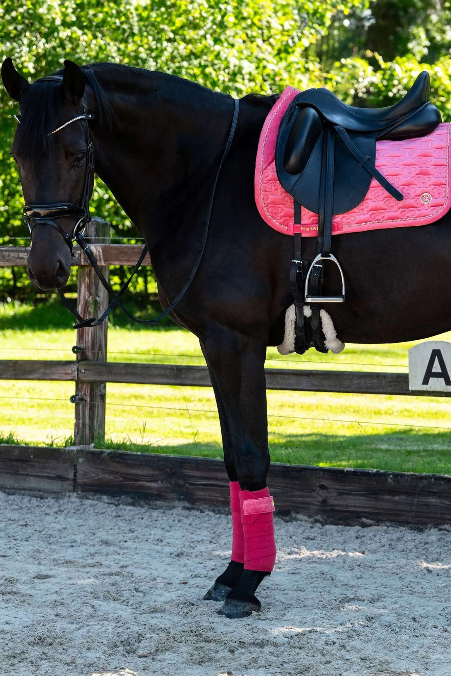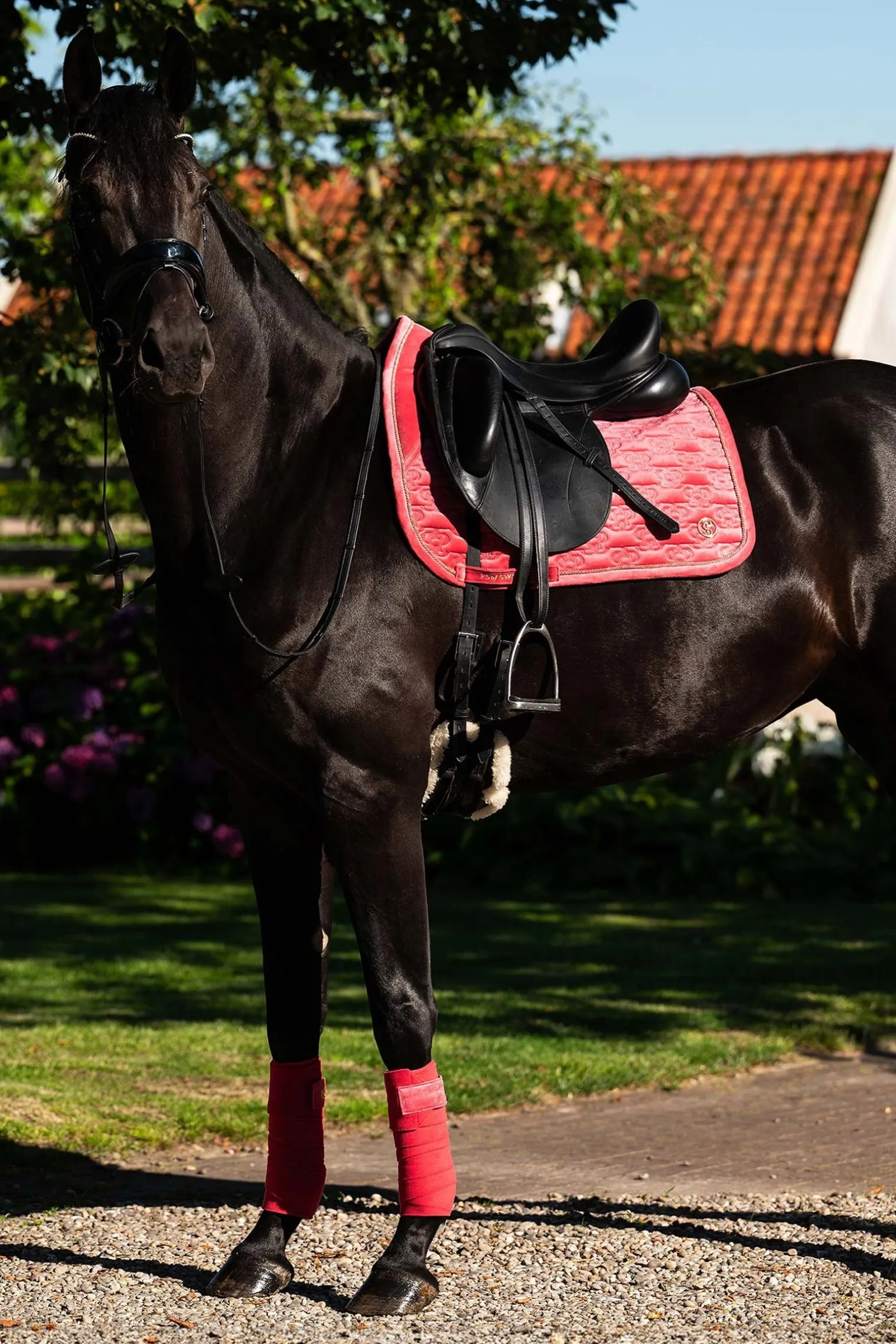 Luxuriöser Samt trifft auf neue Monogramm-Steppung in dieser Satteldecke. Lollipop-Einfassung, rutschfest und schnelltrocknend. Neue Monogramm-Steppung auf luxuriösem Samtstoff mit dreifarbiger und solider Lollipop-Einfassung. Verdeckter Gurttunnel und metallisches Zitat in Gold oder Silber entlang der Wirbelsäule. Vervollständige den Look mit einem Poloshirt und einer Fliegenhaube aus der Velvet Monogram Collection.