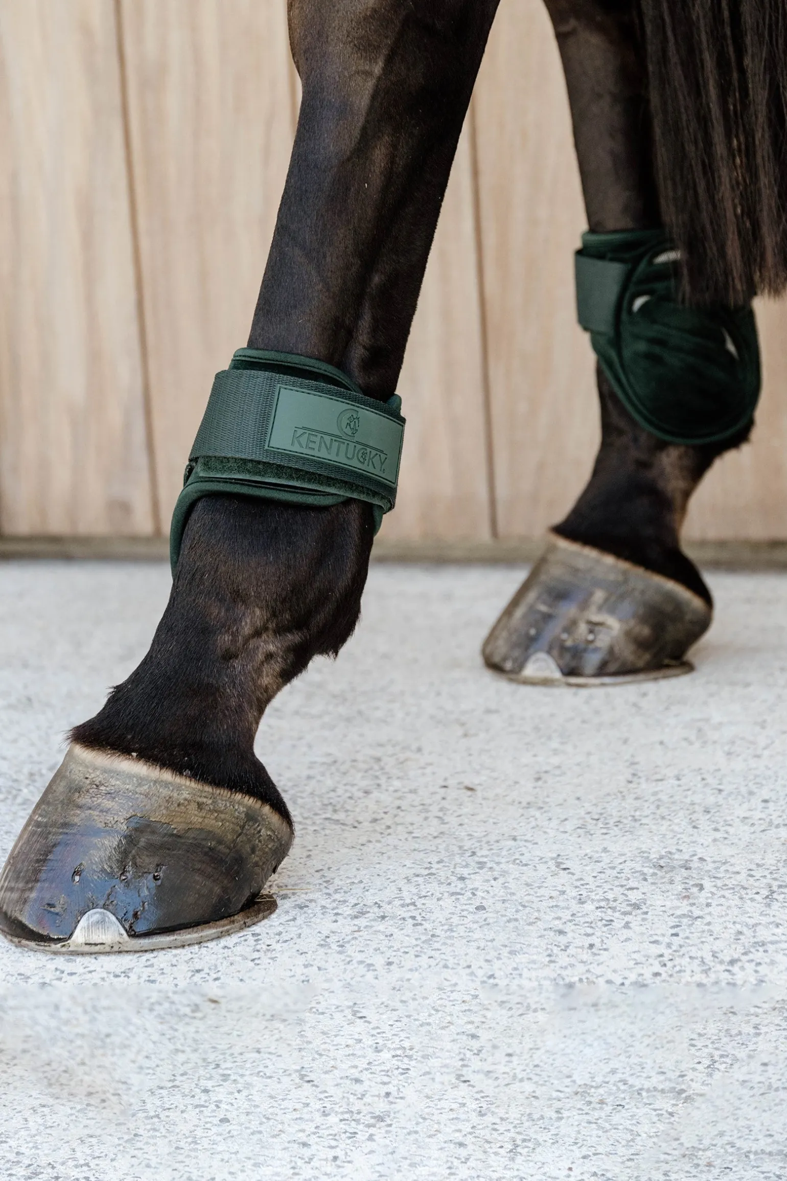 Unser berühmter Samtstoff wird auf das EVA laminiert, das dann bei hoher Temperatur in eine Heißpressform gelegt wird. Die Gamaschen sind auf der Innenseite mit dem sehr atmungsaktivem und bekanntem 3D-Spacer-Futter ausgestattet. Dieses 3D-Spacer-Futter wird auch bei Kentuckys 3D-Spacer-Gamaschen und den Pferdedecken verwendet. Die Außenschale der Gamaschen ist aus leichtem, aber dennoch robustem EVA gefertigt. EVA hat hervorragende stoßdämpfende Eigenschaften. Die Gamaschen sind 35 % leichter als