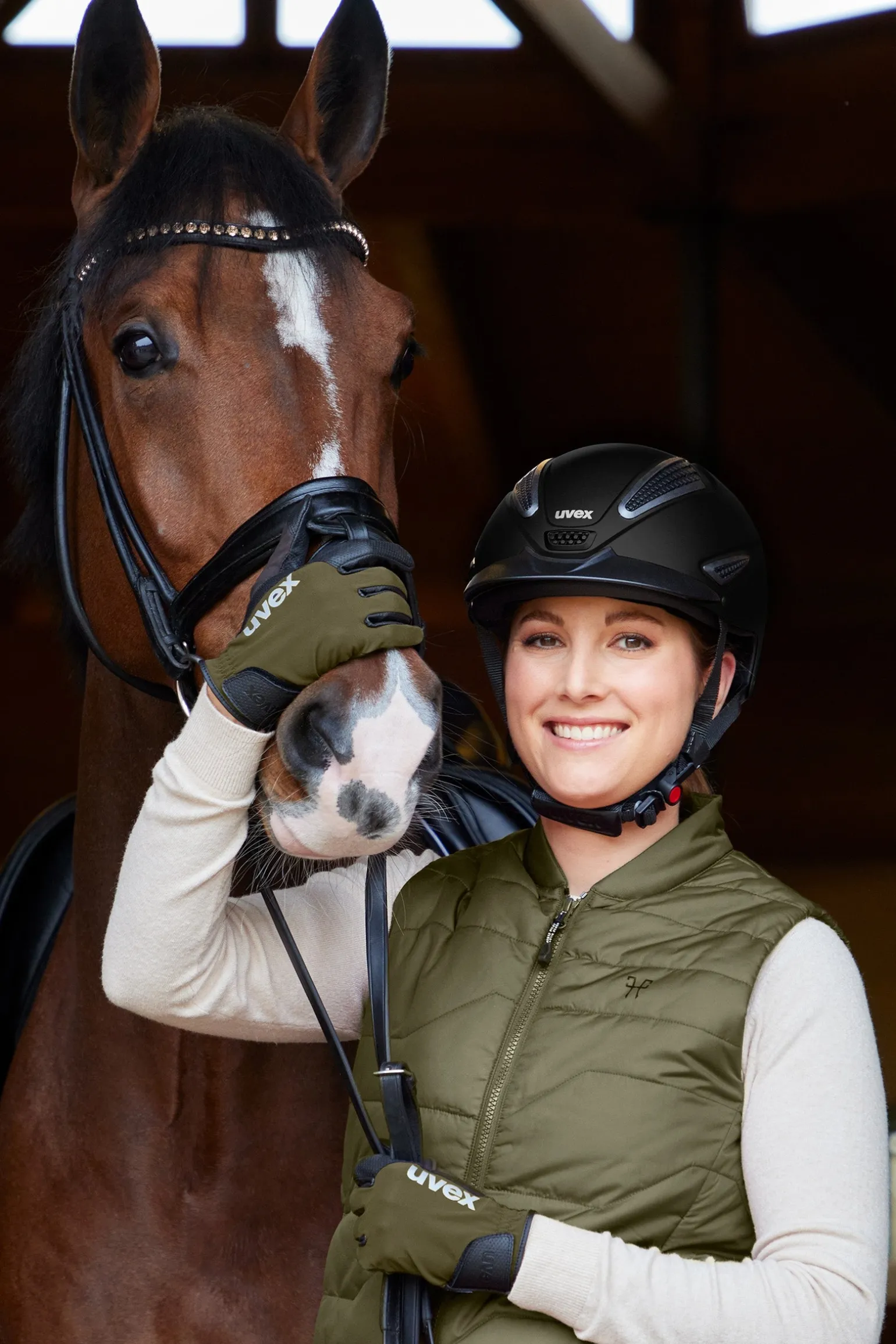 Eine neue Kombination aus Hightech-Materialien und recycelten Komponenten. Mit UV-Schutz und extrem gutem Grip auch bei Nässe. Für perfekte Zügelführung.