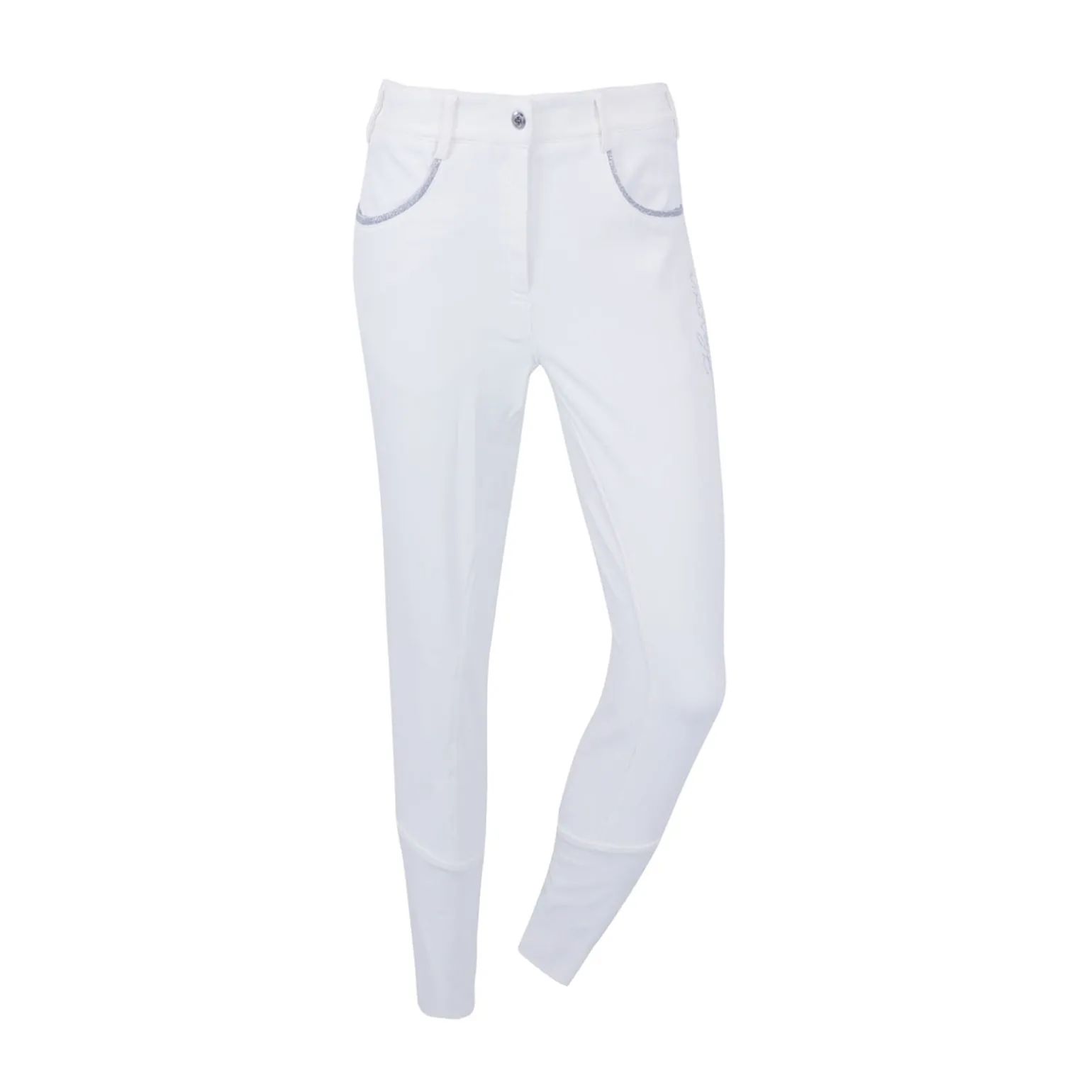 Damenreithose von Harcour mit Vollbesatz-Griff-Fix & Crystal-Logo. Taschen mit glänzendem Band. Hergestellt aus Harcour Technologie Stoff: Atmungsaktiv, wasserabweisend und Bi-Stretch und der Fix-System technology: 16 Schichten von Silikon wurden angewendet, um maximale Sicherheit zu geben.