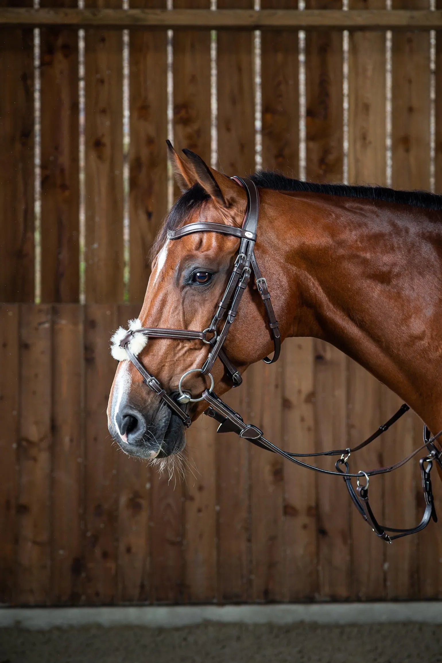 Der Nasenriemen ist das herausragende Merkmal dieser Trense. Er sorgt für optimale Kontrolle, indem der Druck gleichmäßig verteilt wird – das hilft, das Maul des Pferdes geschlossen zu halten und die Konzentration zu fördern. Gleichzeitig ermöglicht das Design eine bessere Luftzirkulation und ist damit ideal für intensives Training und Turniereinsätze. Durchdacht konstruiert, bleibt das Pferd auch bei langen Ritten frei von Reibung und Irritationen – mit Komfort als oberster Priorität. Verstellbare Backenstücke erlauben eine individuelle Passform für unterschiedliche Kopfformen und -größen. Kombiniere die Trense mit passenden Dy’on-Zügeln aus Büffelleder oder einem Martingal für ein vollständiges Setup, das auf Leistung ausgelegt ist. Dieses Modell verbessert nicht nur die Kontrolle und Kommunikation mit dem Pferd, sondern vereint auch Funktionalität und Stil für den täglichen Einsatz.