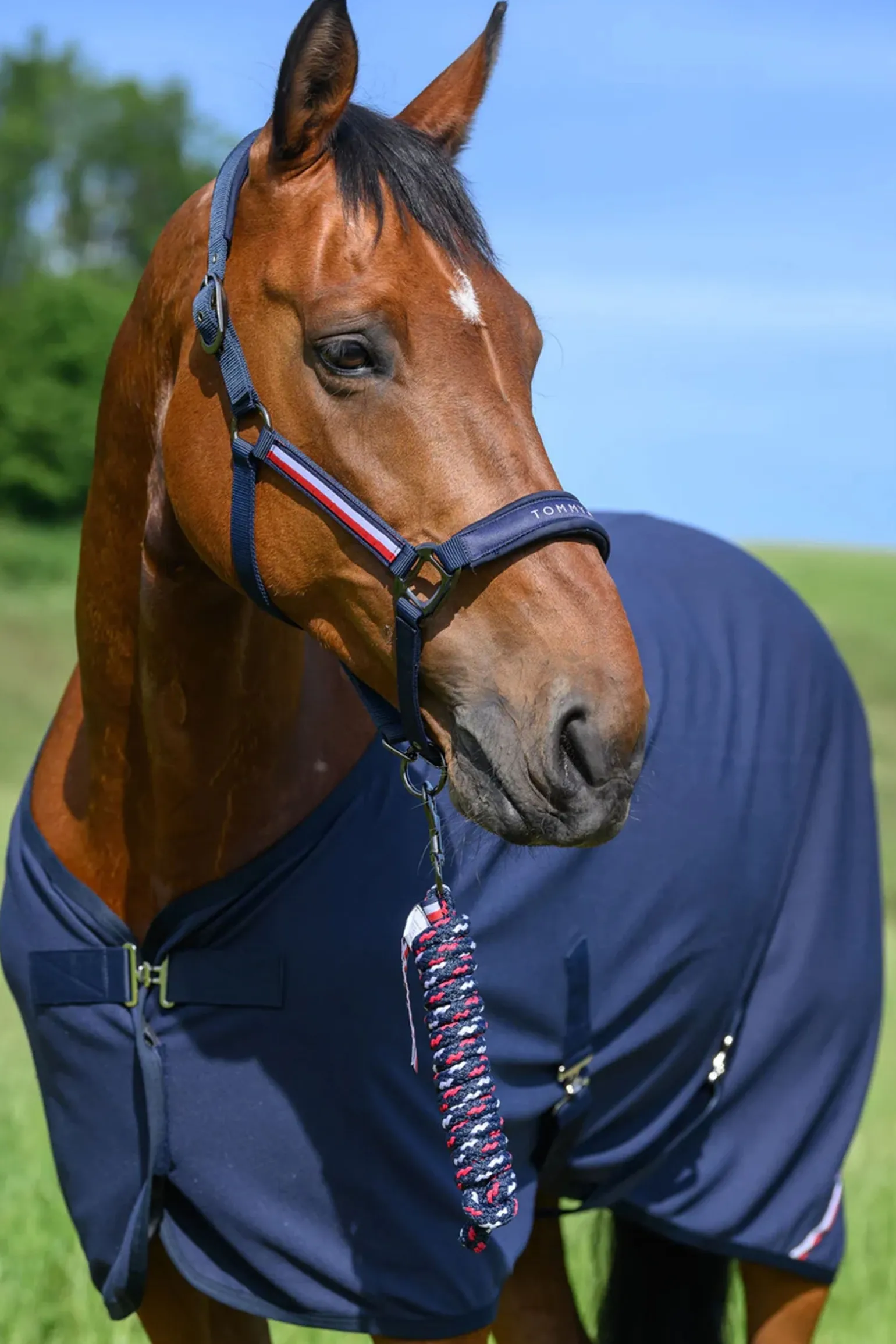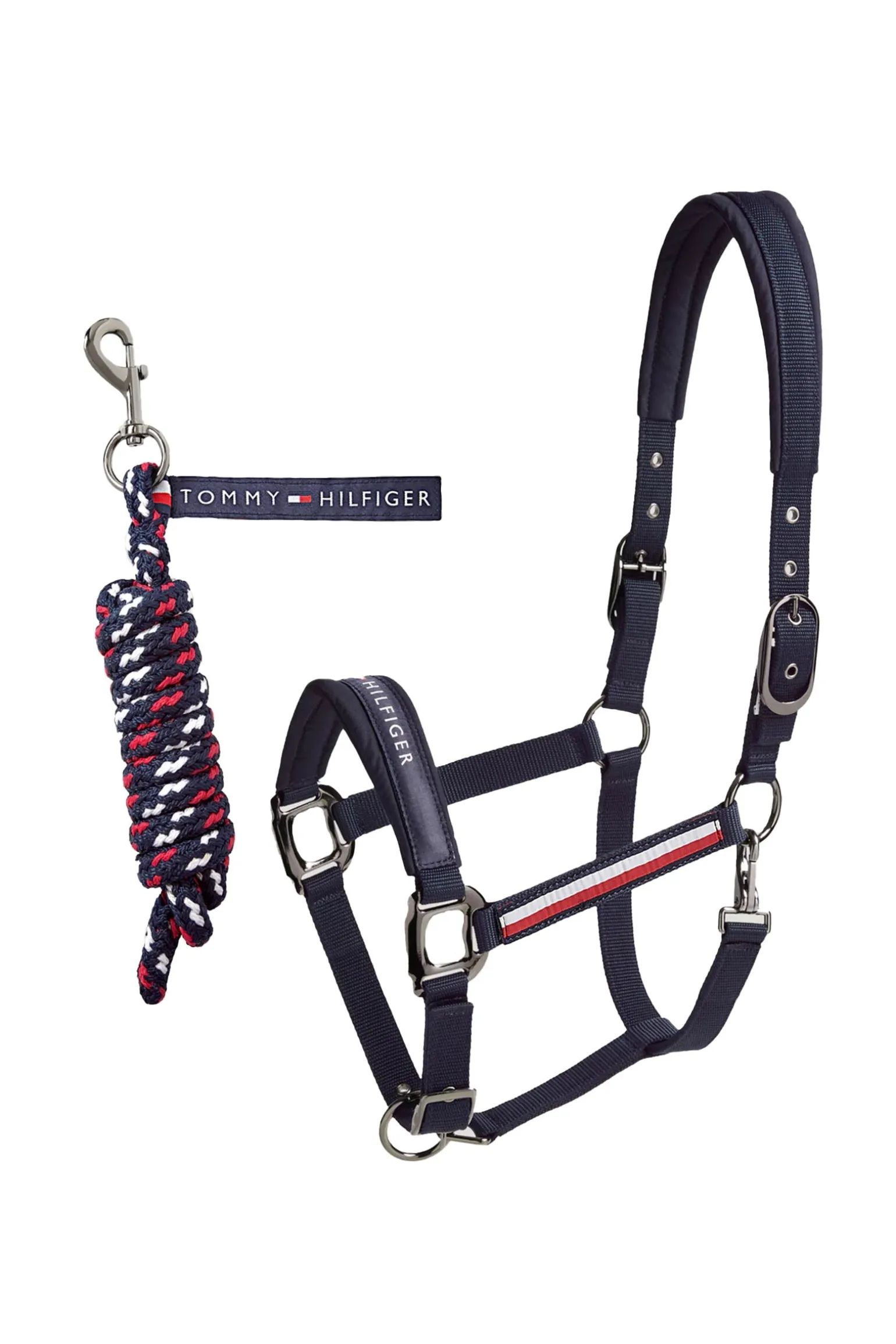 Dies ist ein Set, das den dreifarbigen Führstrick von Tommy Hilfiger und das klassische Halfter mit dem Tommy Hilfiger-Logo und dem Global Stripe-Branding kombiniert.